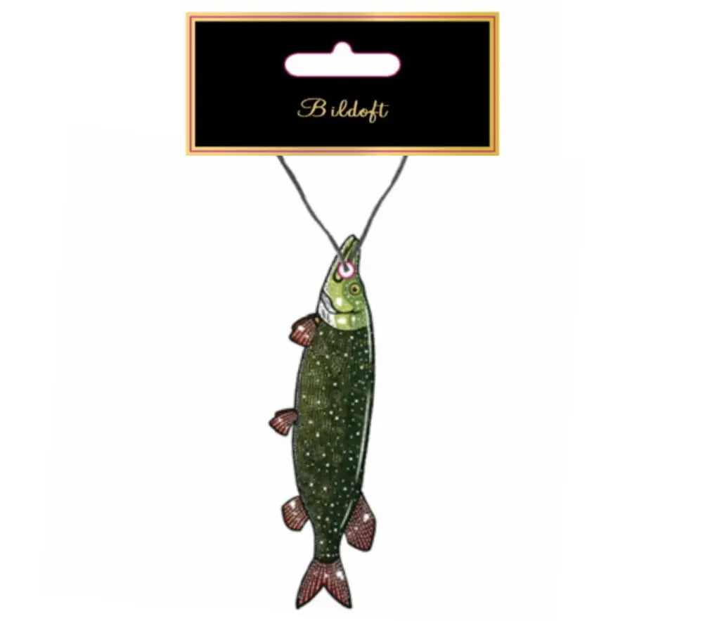 Ilmaraikastin, joka parantaa tuoksua autossa, kuorma-autossa, veneessä tai mopoautossa. Kuviona hauki.