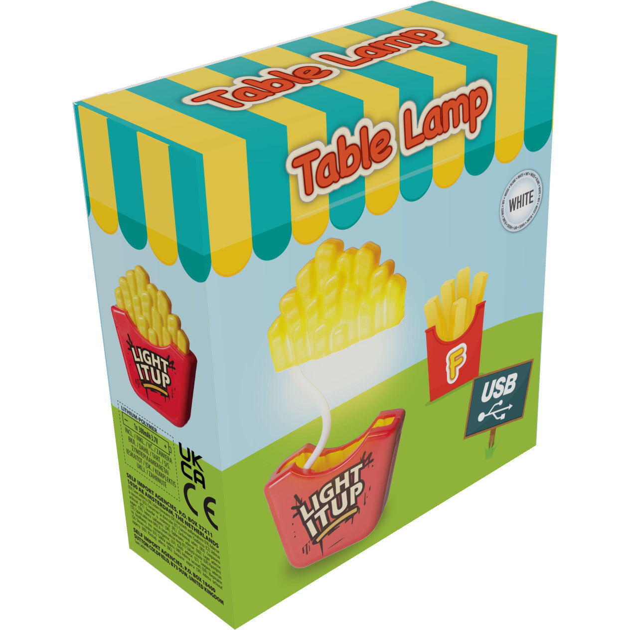 Ranskalaisten muotoinen pöytälamppu tuo sisustukseen leikkisää ilmettä. Irrotettavat ranskikset toimivat lampun valo-osana, ja rasia toimii jalkana. USB-ladattava 300 mAh akku tekee käytöstä vaivatonta.