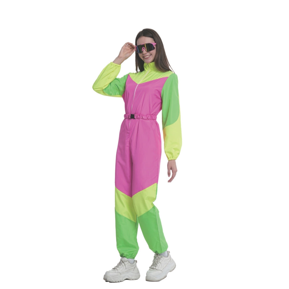 Tämä värikäs naisten hiihtoasu tarjoaa ihastuttavan retrotyylisen ilmeen, joka sopii täydellisesti teemajuhliin, afterskiin tai naamiaisiin. Asu koostuu yhtenäisestä haalarista ja siihen kuuluvasta vyöstä, jotka täydentävät klassisen tyylin. Suojalasit eivät sisälly pakkaukseen.