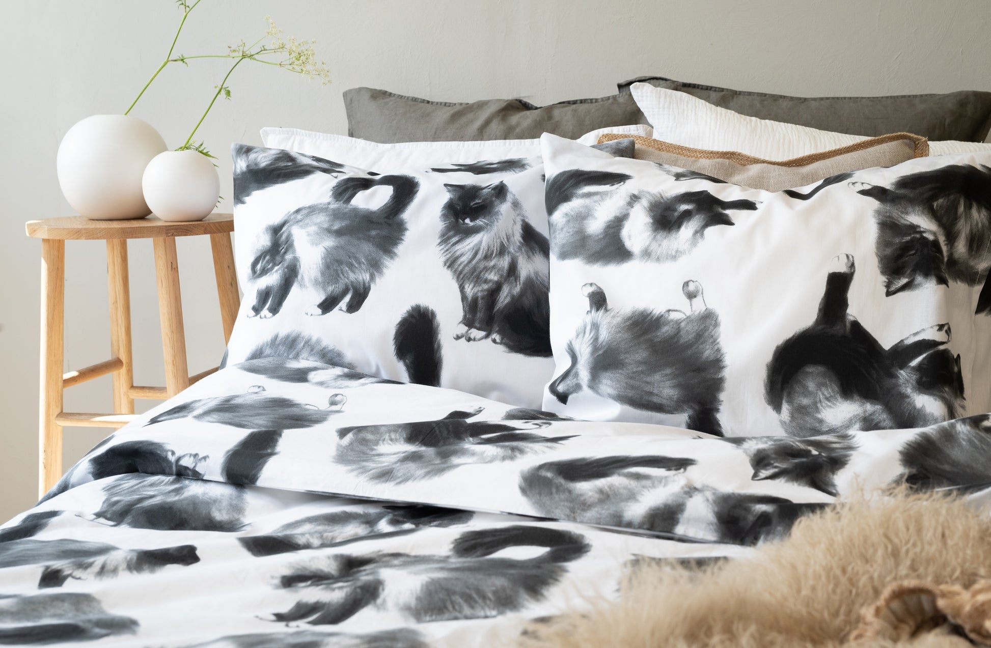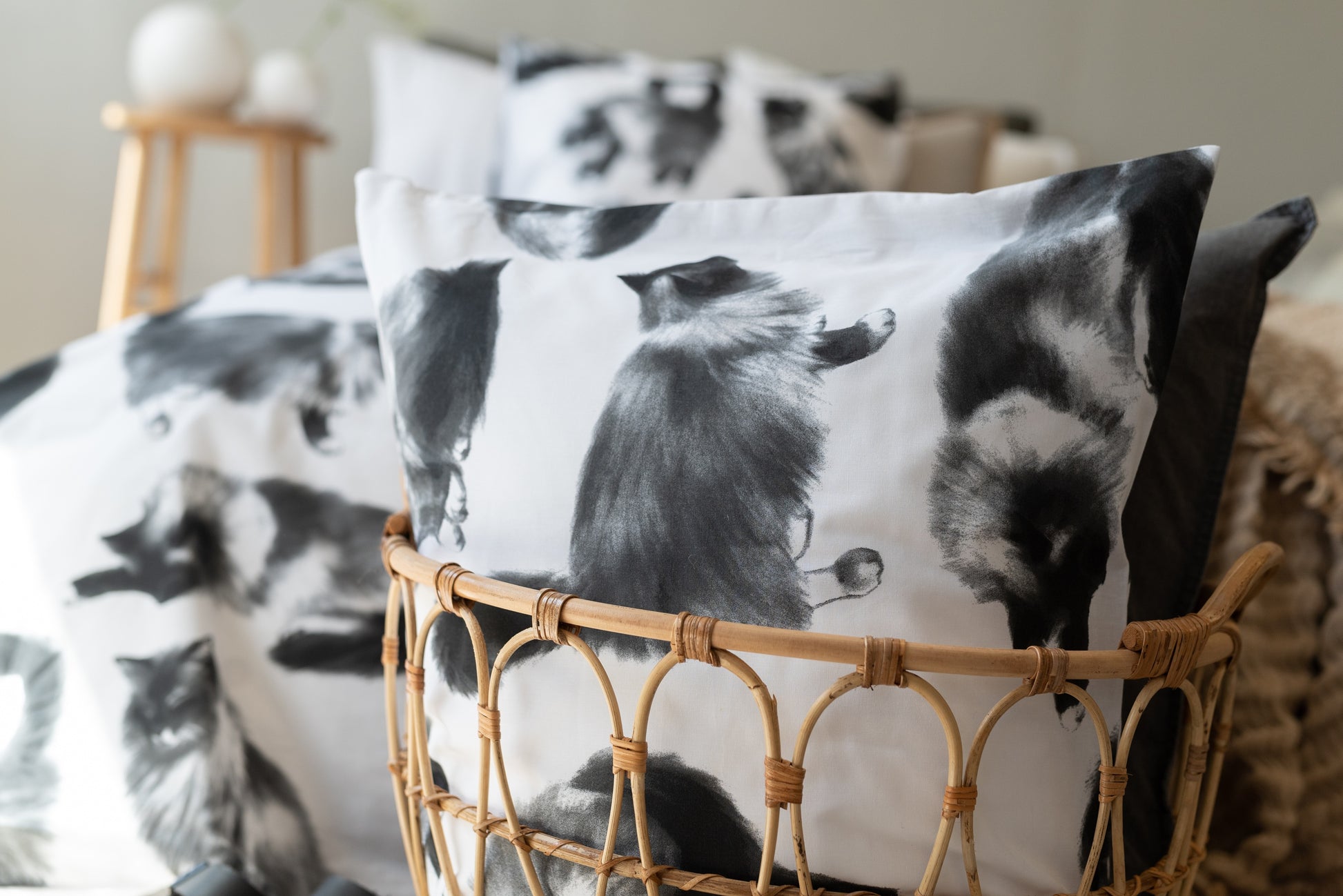 Pussilakanasetti, joka koostuu tyynyliinasta ja pussilakanasta. Pussilakanasetissä on painettu kuvio, ja se on valmistettu pehmeästä ja mukavasta puuvillalaadusta.