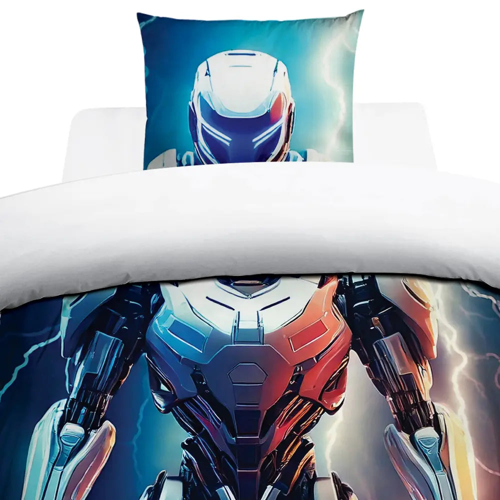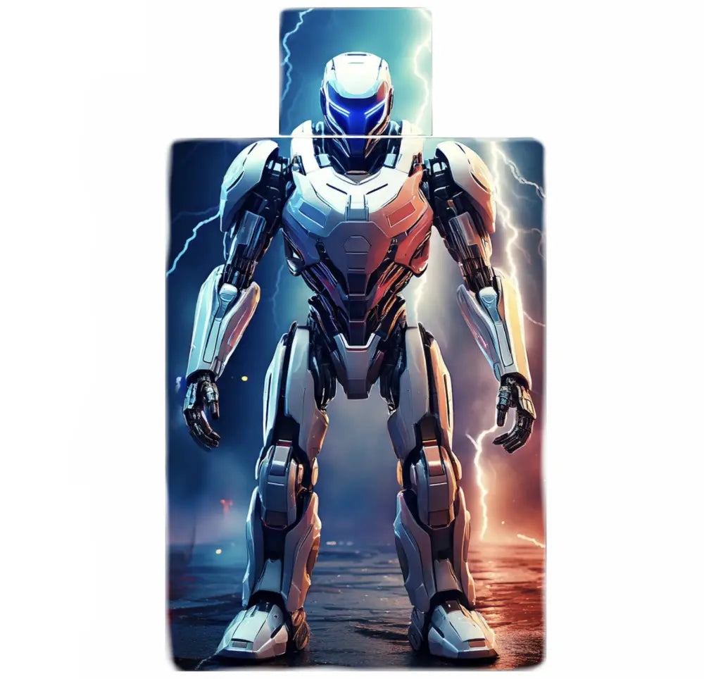 Anna mielikuvituksen lentää tämän upean robottiaiheisen vuodevaatesetin kanssa! Täydellinen kaikille lapsille ja nuorille (tai aikuisille), jotka rakastavat tekniikkaa, futuristisia sankareita ja toiminnantäyteisiä unia. Voimakas robotti salamoiden taustalla tuo makuuhuoneeseen vaikuttavan energian ja voiman tunnun.