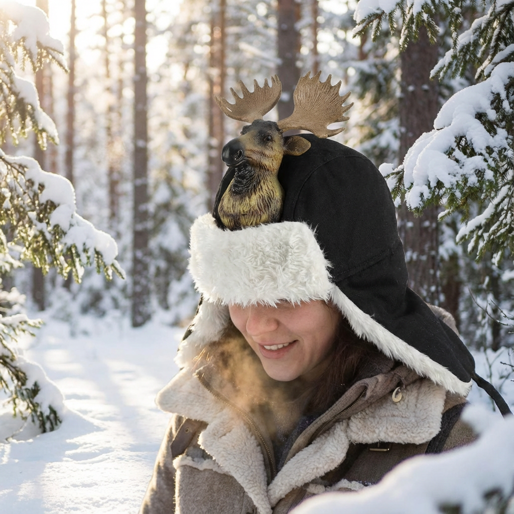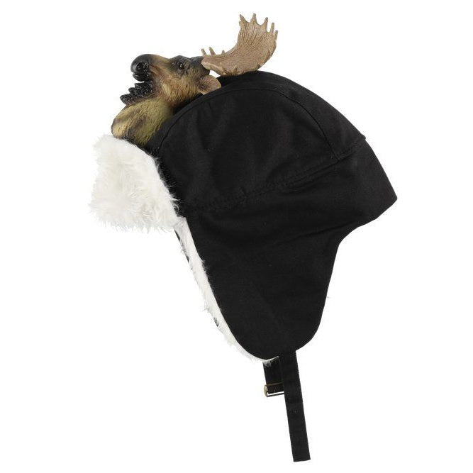 Lämmin ja hauska talvilakki, jossa on hirvenpää. Täydellinen metsästäjälle tai luonnonystäville, jotka haluavat humoristisen yksityiskohdan talven varusteisiinsa.