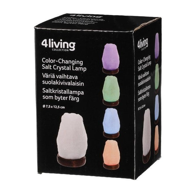 Koristeellinen suolakristallilamppu, joka vaihtaa väriä ja luo rauhallisen, harmonisen tunnelman huoneeseen.