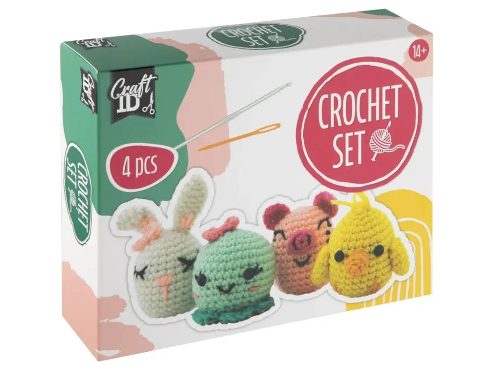 Askartelusetti omien pienten eläinhahmojen virkkaamiseen. Setti sisältää materiaalit pupun, tipun, sian ja mustekalan tekemiseen, ja se on koottu niin, että pääset alkuun heti ilman lisäosien ostamista.